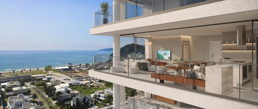 Praia Brava, Itajaí A 230 m do mar, este apartamento de 118 m² privativos foi projetado para quem busca sofisticação, conforto e localização estratégica na Praia Brava. O layout privilegia a integração dos ambientes e a vida social, com living amplo e varanda gourmet com churrasqueira a carvão, além de vista parcial do mar. São 3 suítes que garantem privacidade total e 2 vagas de garagem. Destaques do empreendimento: Rooftop com piscina e vista panorâmica da Praia Brava Academia, salão de festas, espaço gourmet e playground Diferenciais do apto; 3 suítes + lavabo Varanda gourmet com churrasqueira a carvão Cozinha, estar e jantar integrados Ventilação cruzada e excelente iluminação natural 2 vagas de garagem