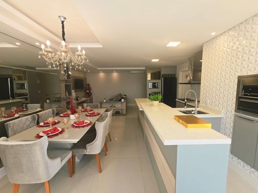Living integrado com jantar e cozinha