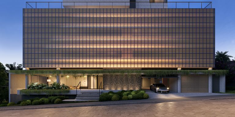 Assinado por Marcos Bertoldi Arquitetos, o projeto contempla arquitetura, interiores e paisagismo em uma linguagem moderna e atemporal. Fachada em sistema STO, grandes áreas envidraçadas, esquadrias piso ao teto e mobiliário de design assinado reforçam a identidade contemporânea e elegante do empreendimento.